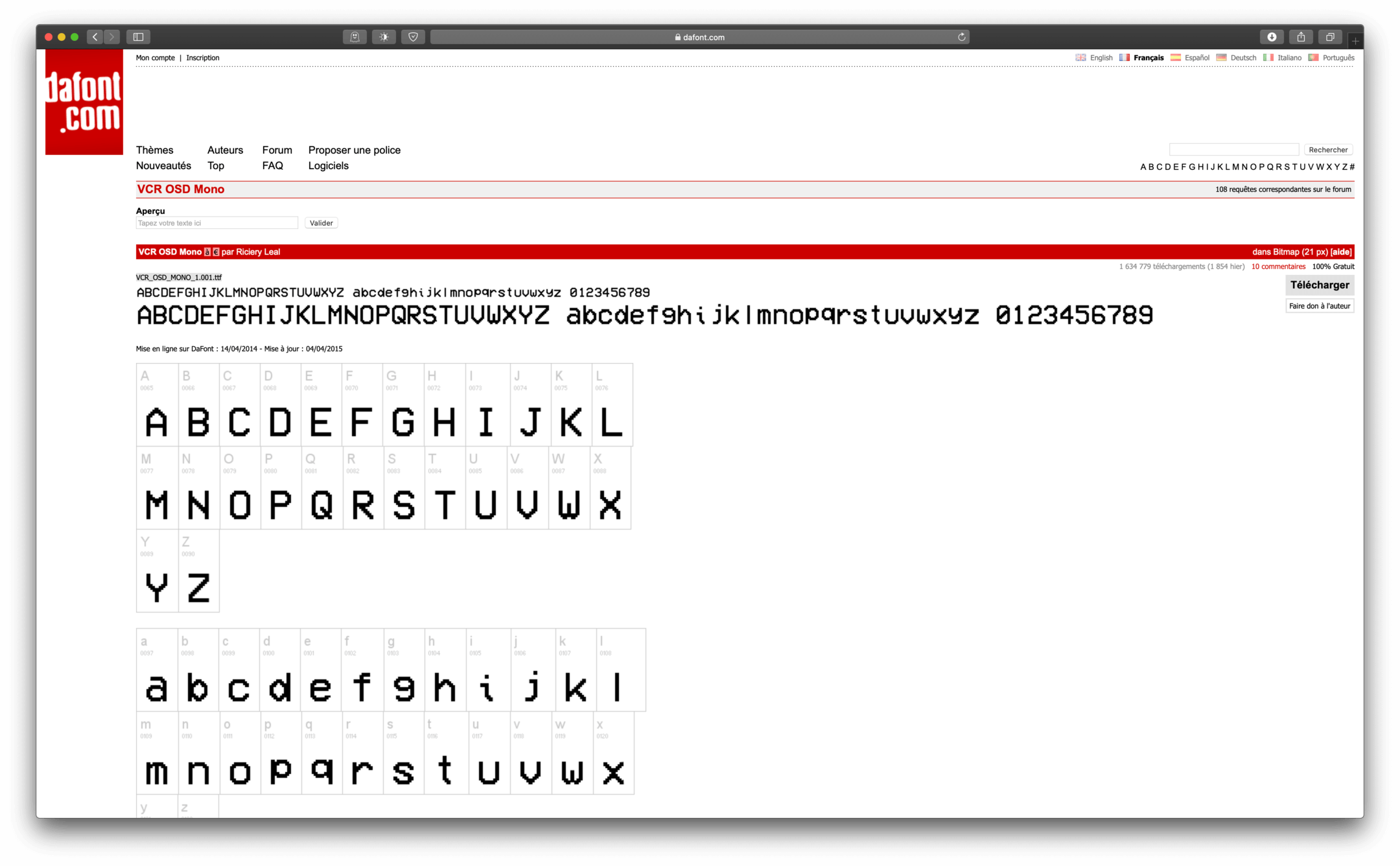 Je garde quand même mon idée found-footage vidéo et je file sur Dafont pour récupérer une police d’écriture ayant un coté VHS :